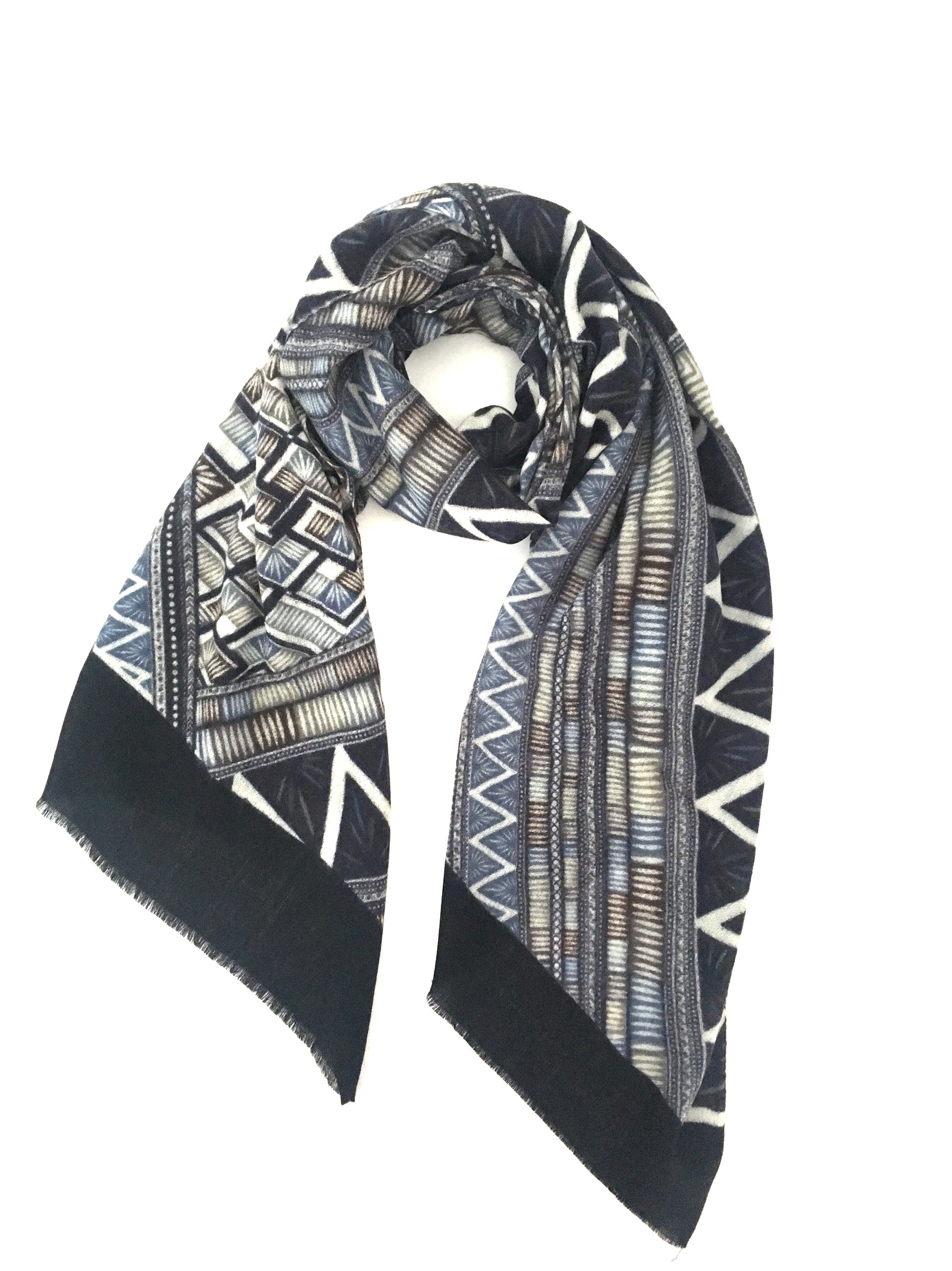- Features: Unisex Scarf, Hand Printed Geo